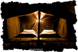 Sous tentes berbères en dure, recouvertes de leur épaisse toile en laine de chèvre et doublée d’un léger tissu noir qui barre la route aux insectes. L’électricité éclaire le petit intérieur douillet. La literie vous est fournie.